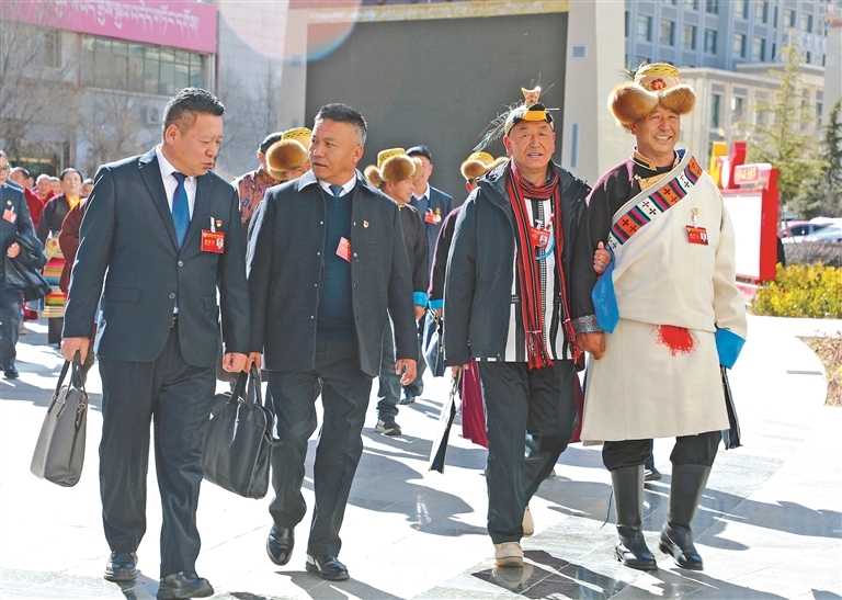 图为山南市政协委员步入会场。