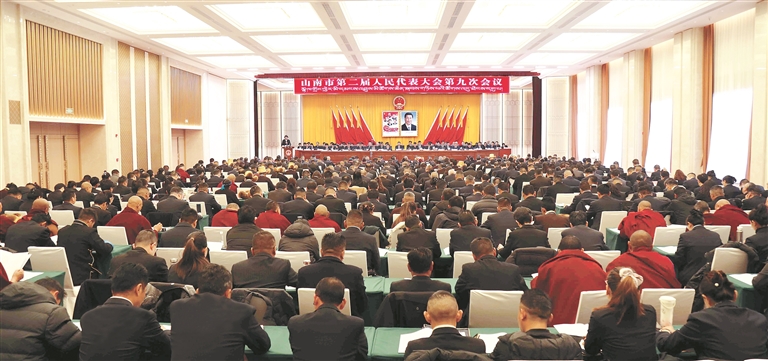 图为山南市第二届人民代表大会第九次会议现场。