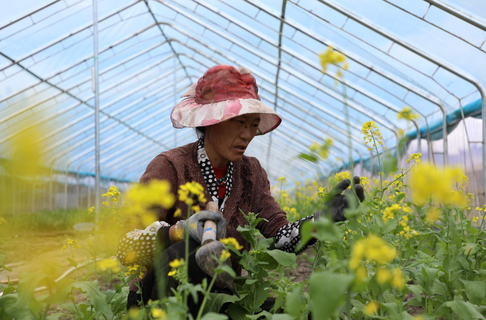 当地村民在高原航天育种基地务工。人民网记者 次仁罗布摄
