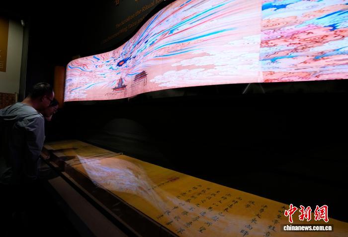 “近年来,科技赋能文博事业,让西藏历史文化得以更好地传播。”程忠红说。在“雪域长歌——西藏历史文化”展厅内,《普渡明太祖长卷图》横挂在墙上,页面如流水般徐徐滚动。她介绍,因实物长49.68米,宽0.66米,若放在展柜中,观众很难目睹长卷的全部内容,采用高清数字长卷动态演示技术,可实现整幅画面匀速滚动播放。