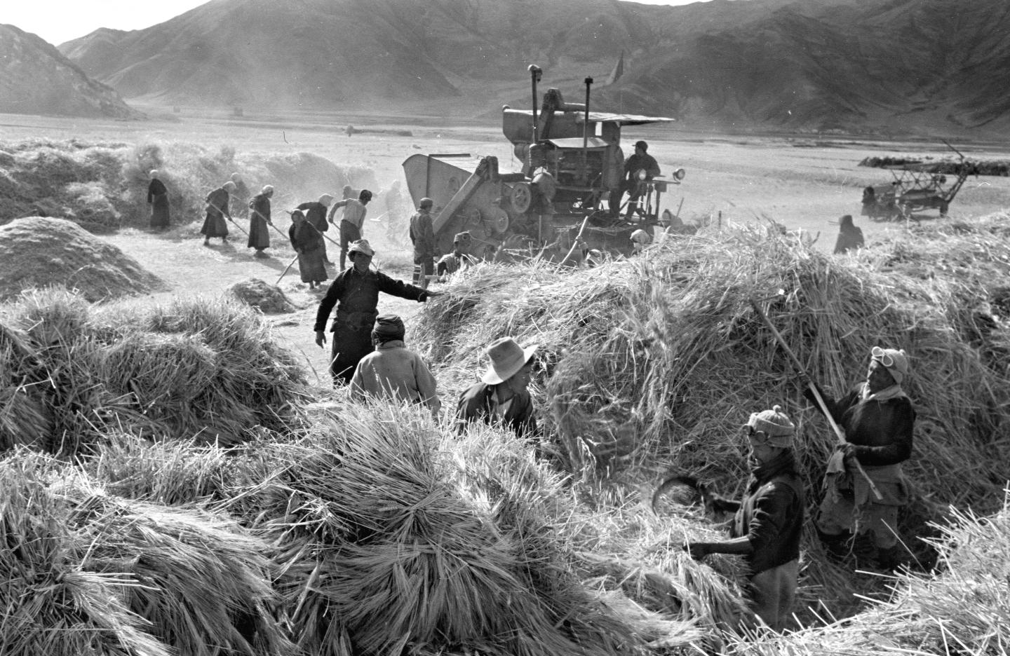 1965年,堆龙德庆县(现为堆龙德庆区)南岗乡互助组组员们在收割庄稼。新华社记者 吴祖政 摄