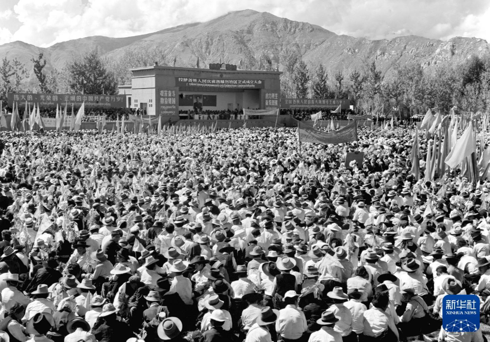 1965年9月,西藏自治区首府拉萨市3万多人集会,热烈庆祝西藏自治区正式成立。新华社记者 马竞秋 摄