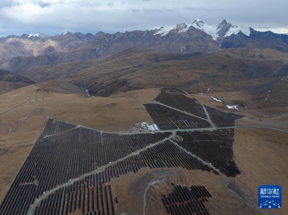 2025年1月6日拍摄的华电西藏才朋光伏电站,位于山南市乃东区才朋村,光伏列阵最高海拔5228米。新华社记者 姜帆 摄