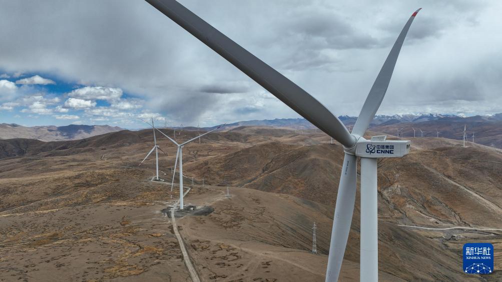 2024年10月17日拍摄的日喀则市萨迦县的风力发电机组。新华社记者 晋美多吉 摄