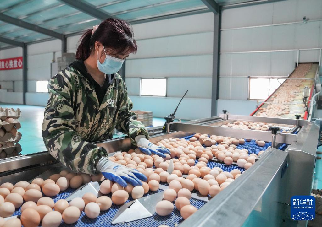 2024年6月14日,工人在西藏宏农的现代化智能蛋鸡养殖场内的流水线上作业。新华社记者 丁汀 摄