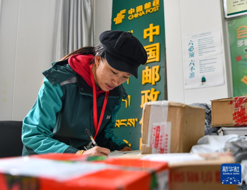 2023年6月10日,山南市隆子县玉麦乡邮政营业员索朗卓嘎在登记快递邮件。新华社记者 晋美多吉 摄
