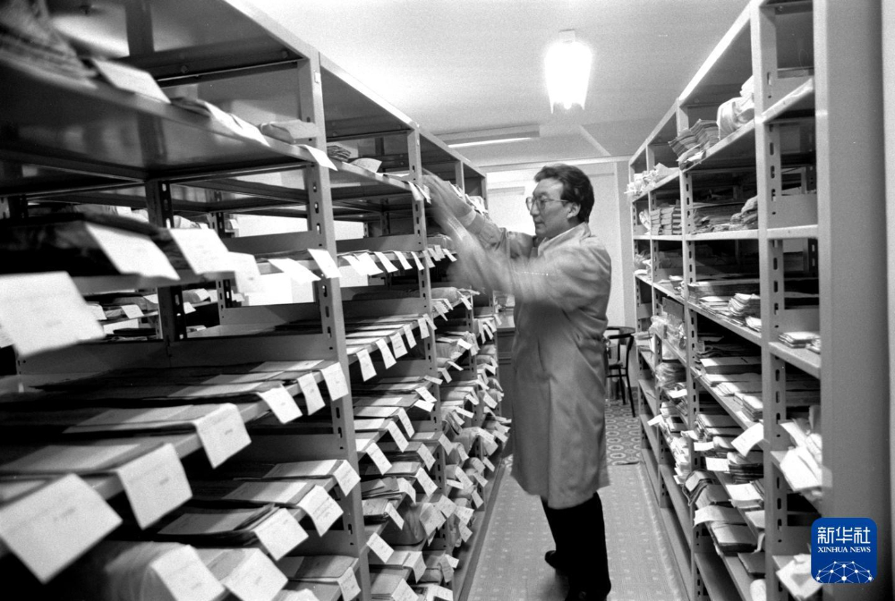 1996年6月,西藏自治区图书馆管理人员在藏文历史重要文献珍藏室查找书目。新华社记者 范长国 摄