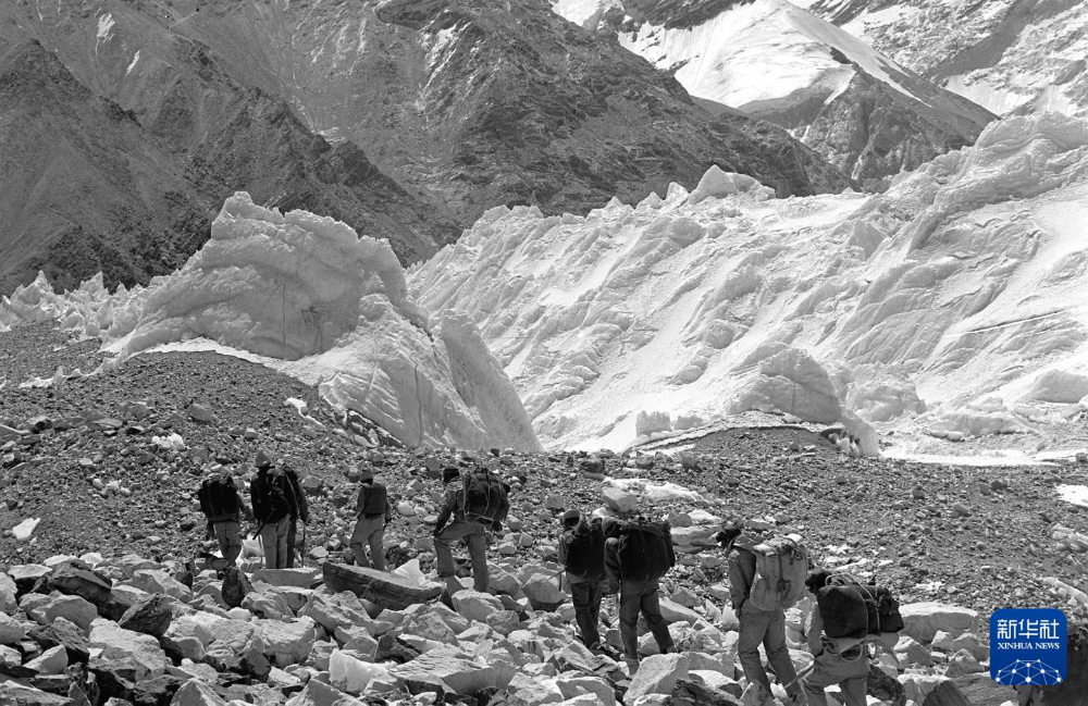 1985年,西藏登山队在没有使用辅助氧气的情况下,首次登顶世界第六高峰——卓奥友峰。这是登山队员在向主峰挺进。新华社记者 才龙 摄