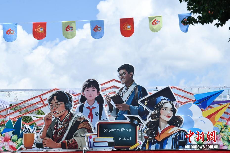 8月7日,随着西藏自治区成立60周年大庆临近,拉萨街头处处洋溢着喜庆氛围。市区主干道的路灯杆上,崭新的国旗与彩旗有序悬挂,鲜艳夺目。人行天桥完成升级改造,装饰板上国旗、石榴籽、牡丹花、浪潮、山川、连心结、雪山与哈达等元素...