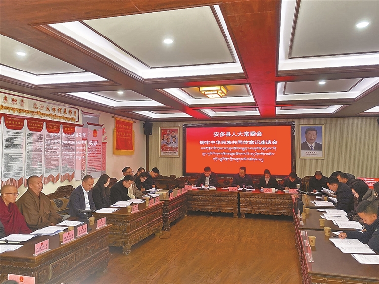 图为安多县人大常委会召开铸牢中华民族共同体意识座谈会现场。记者 汪纯 摄