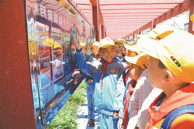 拉萨市墨竹工卡县南京实验小学学生在参观民族团结教育主题公园。