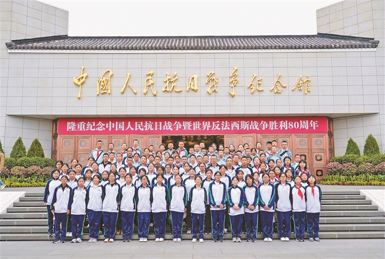 拉萨北京实验中学研学团学生参观中国人民抗日战争纪念馆。
