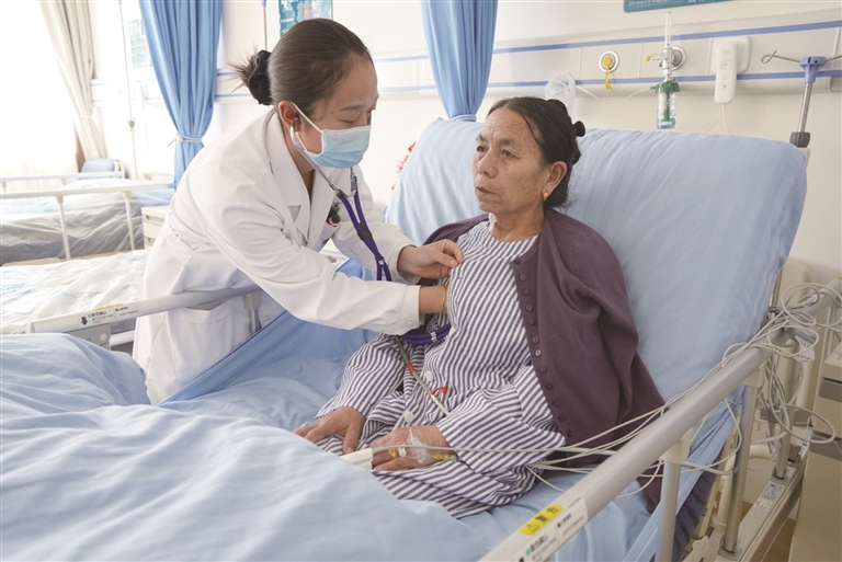 值班医生为患者阿妈检查身体情况。记者 芮怡星 摄