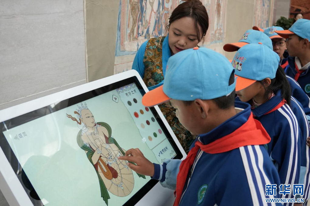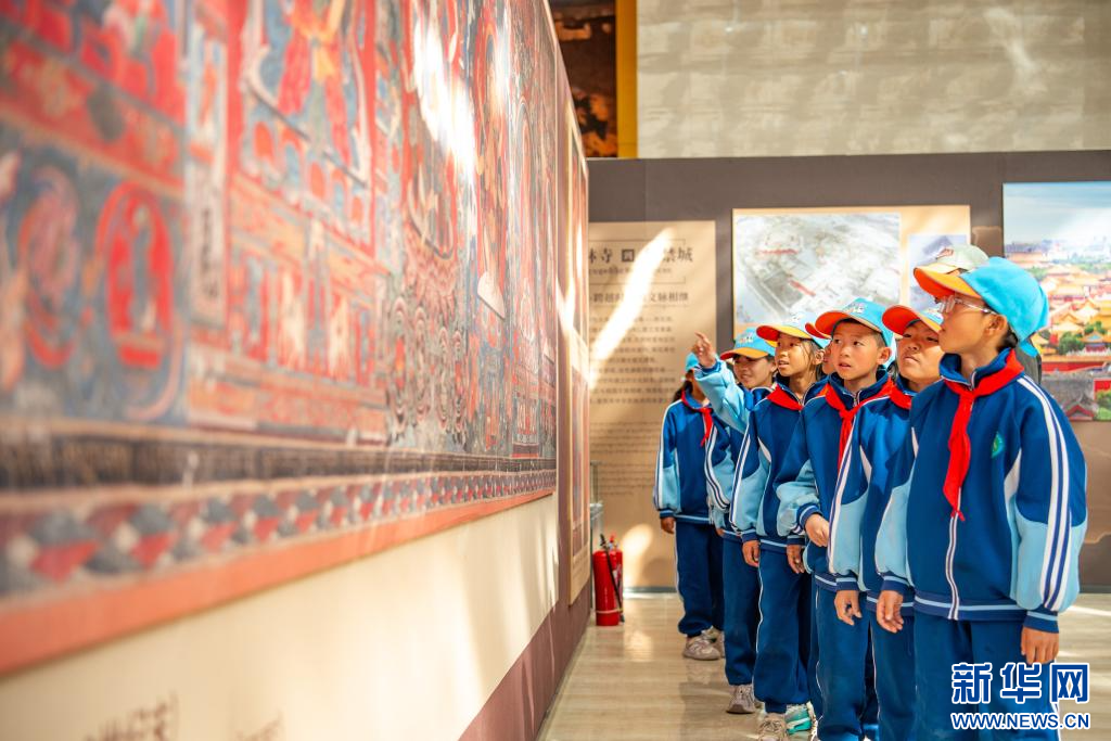 9月26日,学生在参观“镌刻高原 绘见古今”阿里岩画与壁画艺术特展。新华网 旦增努布摄