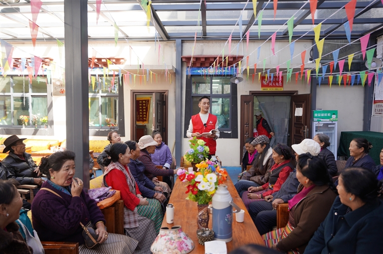 这样热闹的学习场景,源于一份精准适配的“老年兴趣菜单”,策门林老年日间照料中心每日开设两节知识普及与技能培训课,内容涵盖文学阅读、藏文教学等知识类课程,瑜伽、民歌、朗玛堆谐等文体课程,还有安全知识科普等实用内容,从“滋养精神”到“强健身体”,全方位覆盖老人需求。