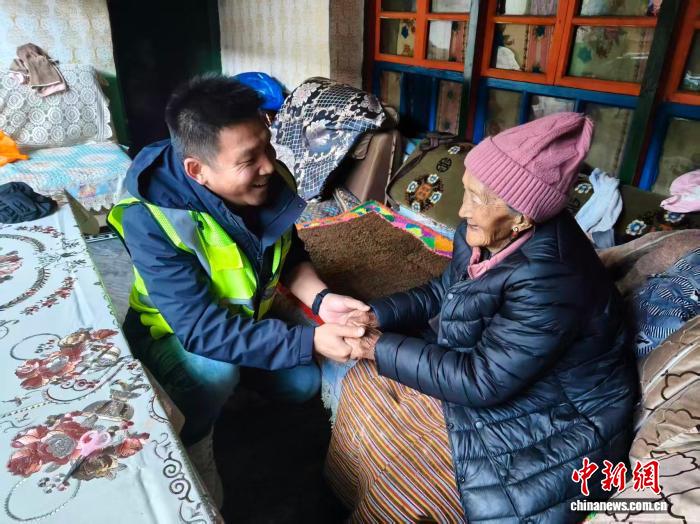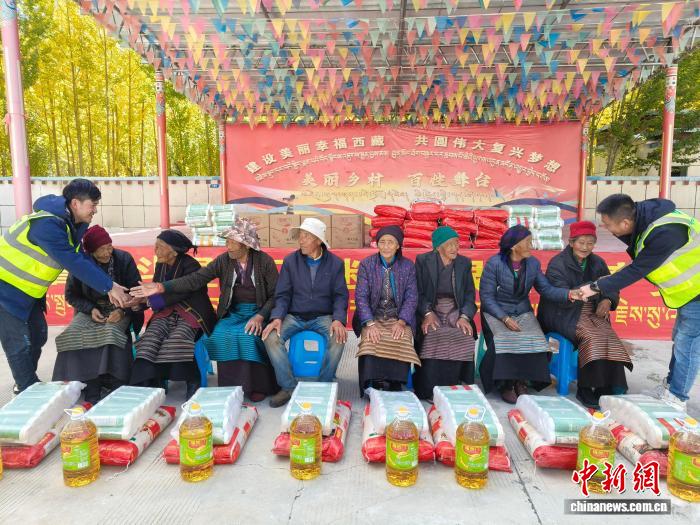 图为西藏山南琼结风电项目赴仲堆村慰问孤寡老人。中建二局 供图