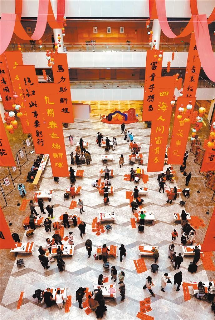 1月25日,克拉玛依市文化馆,当地书法家为市民书写春联。崔文娟摄(中经视觉)