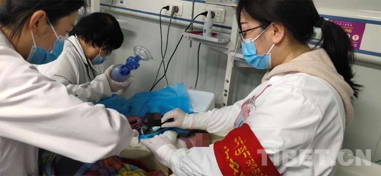 情况紧急,妇产科护士长范雪娟向天津援藏医疗队发出紧急抢救通知,援藏医疗队医务科科长孙乃辉和急诊科李欣芯护士长迅速赶到,加入抢救队伍。此时第二个女婴情况仍无好转,更加危急,心率降至50次/分,新生儿复苏成功的关键是在黄金一分钟内建立有效通气,大家马上全力协作,对患儿进行复苏气囊正压通气及胸外按压,经治疗患儿呼吸逐渐好转,脸色开始变得红润,哭出了声音,心率逐渐上升到120次/分。所有在场的医生,终于深深地松了一口气。