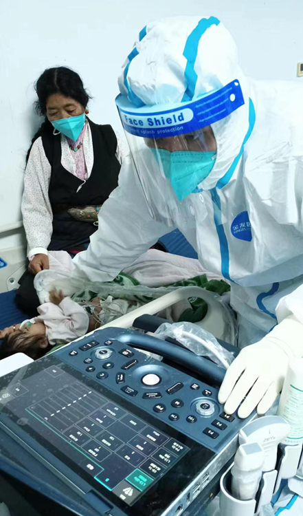上海援藏医疗队队员、日喀则市人民医院儿科主任单怡俊紧急救治患病儿童