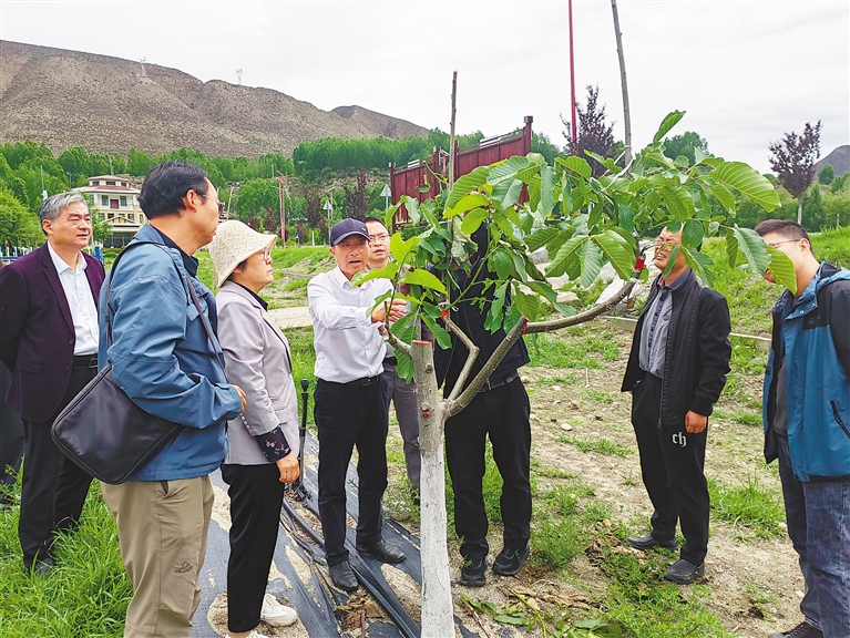 “高原核桃产业技术研究,涉及许多核心指标,这些指标在学术上具有什么样的水平,在国内处于什么位置,这些都是非常专业的问题。因此,需要行业内的专家做出相关方面的鉴定,为我们项目的验收与结题提供支撑和充分的依据。”长江大学援藏工作队队长许晓宏向记者介绍。此次鉴定内容包括平台建设与技术研究两方面,具体有实验室面积、选育圃、采穗圃、育苗圃、生态高效栽培示范园建设总面积、优株或品系的筛选推广和示范、优株嫁接苗数量、采穗圃年生产接芽能力、核桃生产技术人才培养等。