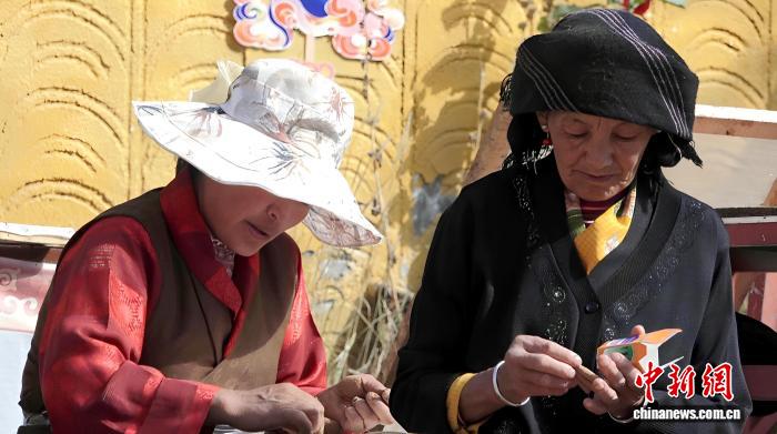 图为村里的妇女通过制作藏香获得稳定收入。贡桑拉姆 摄