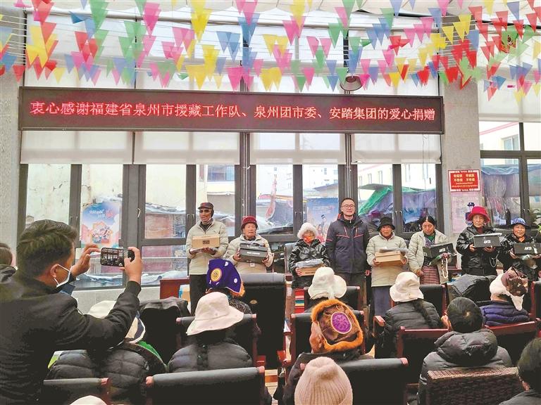 为确保困难群众温暖过冬,泉州市第十批援藏工作队积极协调泉州团市委、安踏集团向洛隆县捐赠了1207件御寒衣物,价值663727元。据悉,通过此次爱心捐赠,老人们切身感受到泉州社会各界对洛隆人民的关心、关爱和支持,也彰显了“泉洛一家亲”、守望相助、手足相亲的真挚情感。