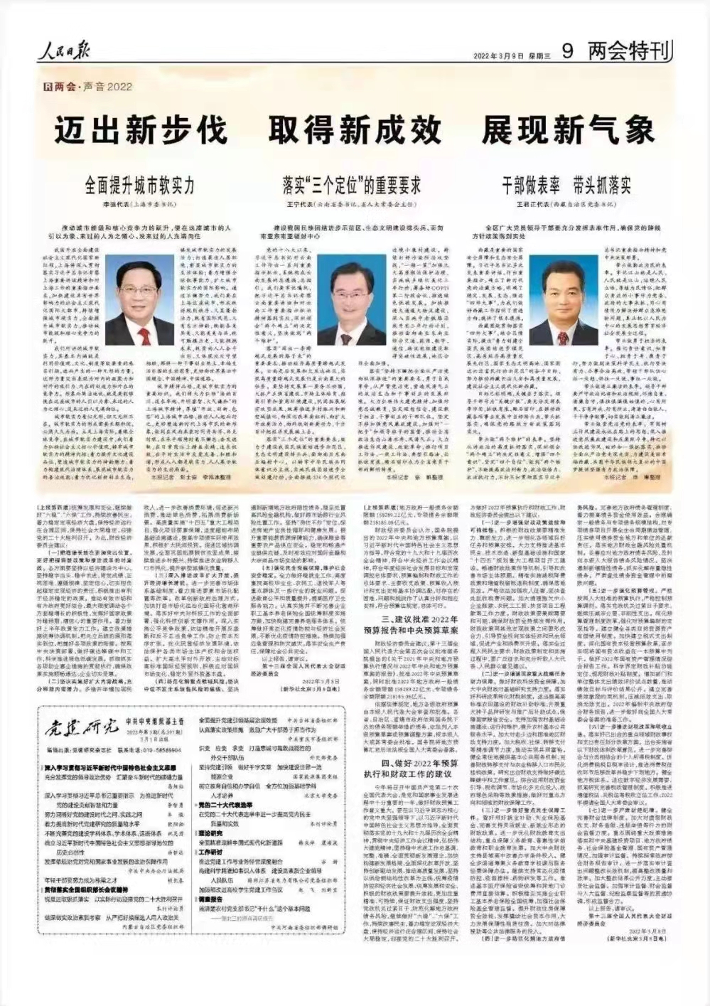 今天出版的人民日报《两会·声音2022》专栏,刊登了全国人大代表、西藏自治区党委书记王君正的“声音”——《干部做表率 带头抓落实》。